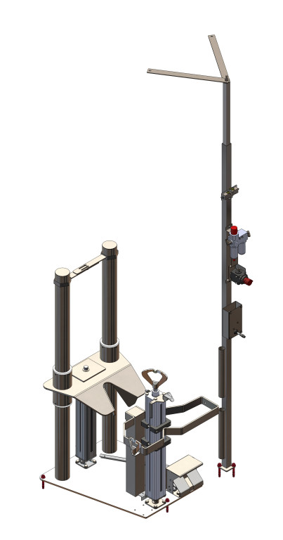 The belly skin puller is a product designed to peel the sheep skin below the top of the sternum to the navel. This system integrates a piston to maintain the head and a second piston with adjustable angle to remove the skin. The system is controlled by pneumatic foot pedal and is delivered with power supply.